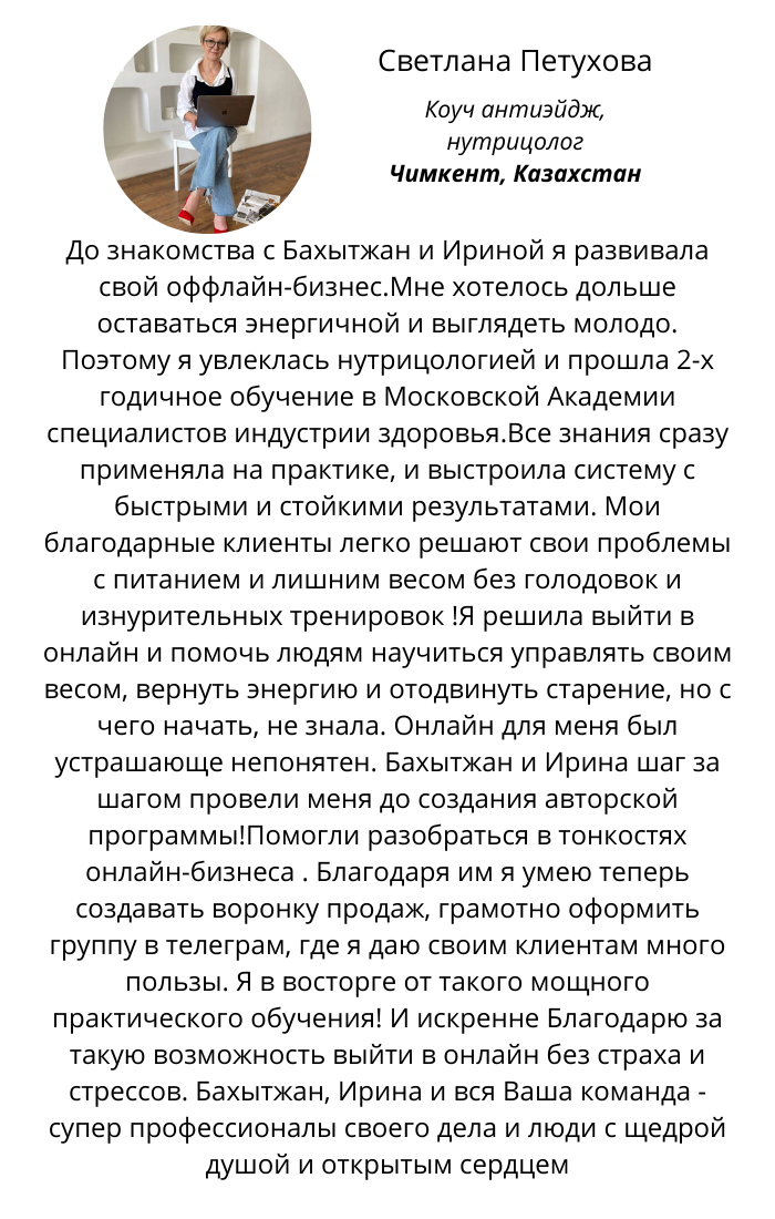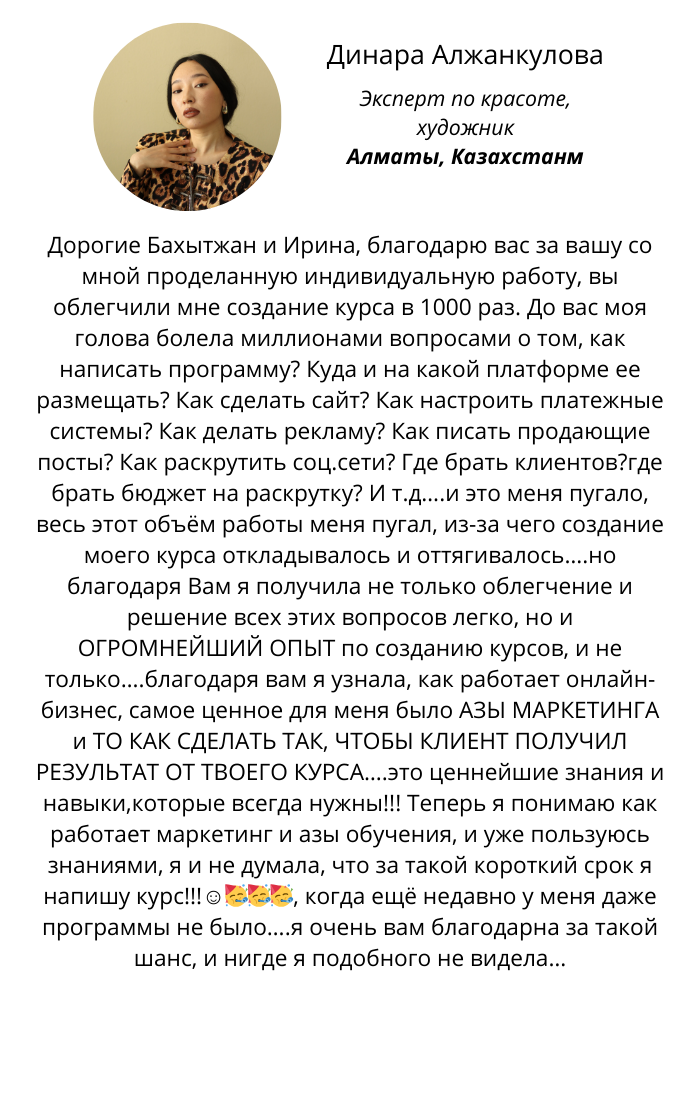 онлайн-бизнеса с Бахытжан Сатвалдиновой