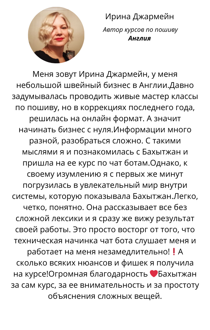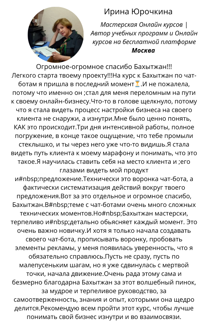 В 2020-2023 годах продавала авторские курсы по чатботам