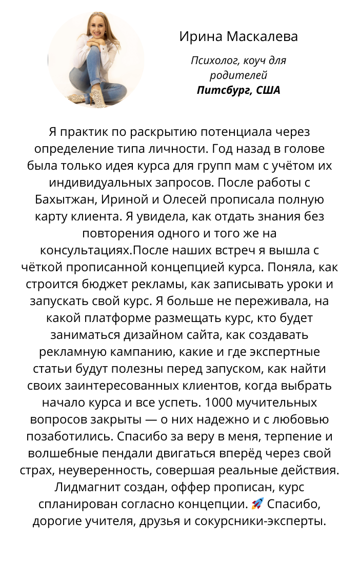 Потом обучилась запуску автовебинарных воронок, причём всё делать на одной платформе с экономией на 5-6 сервисах💥. Навыки коучинга применяю в работе с экспертами, когда они начинают сливаться при запусках.